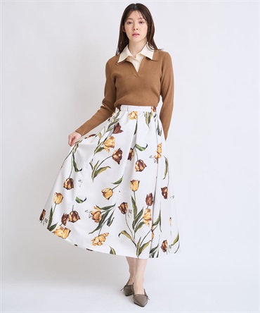 • 【予約】チューリッププリントフレアスカート(51イエロー-S-1月中旬ごろのお届け)