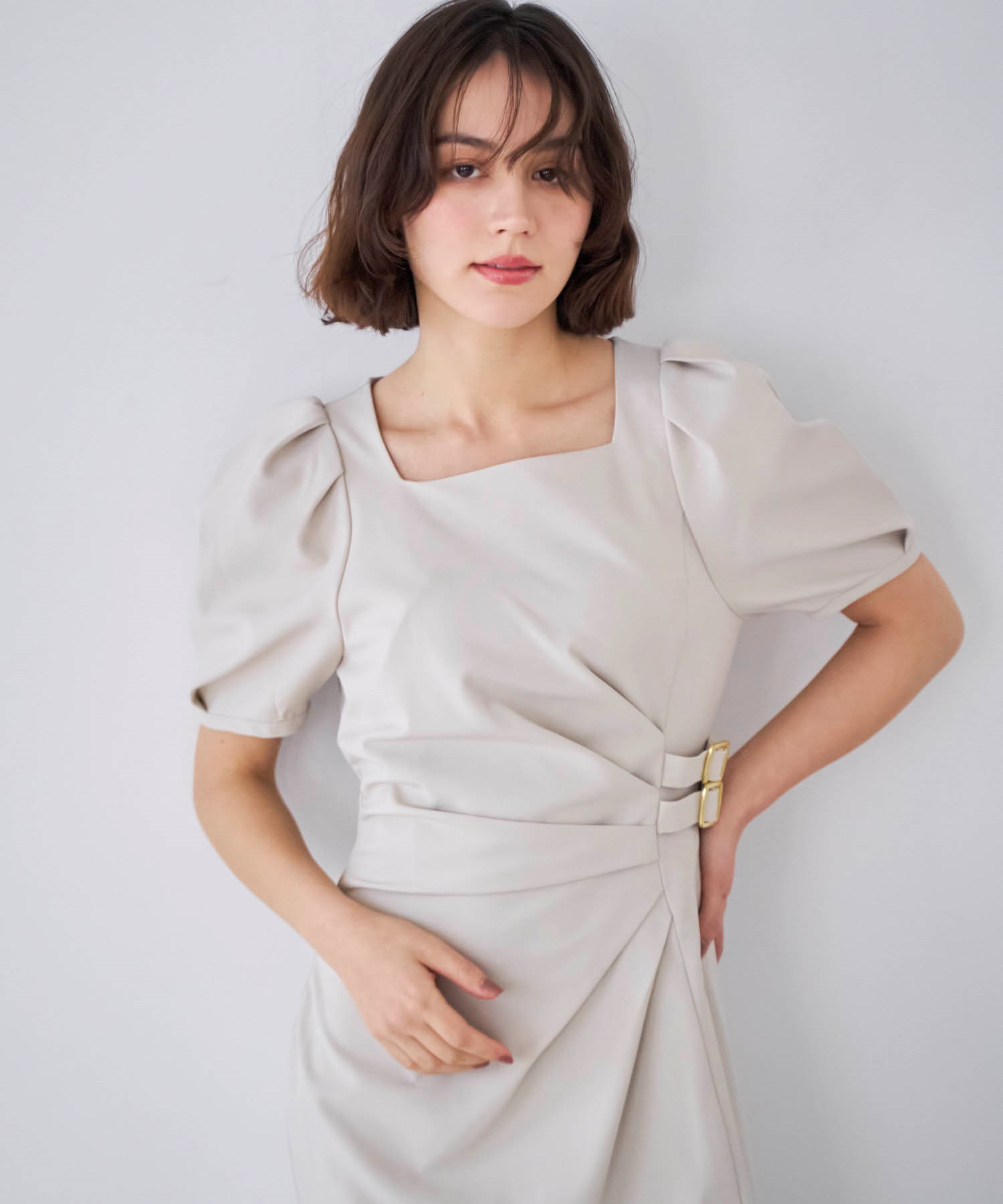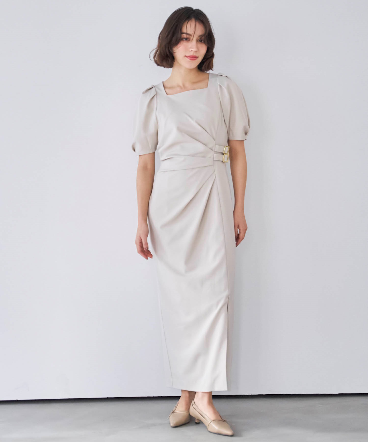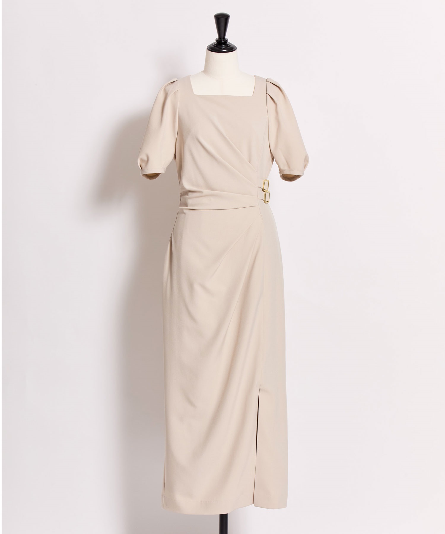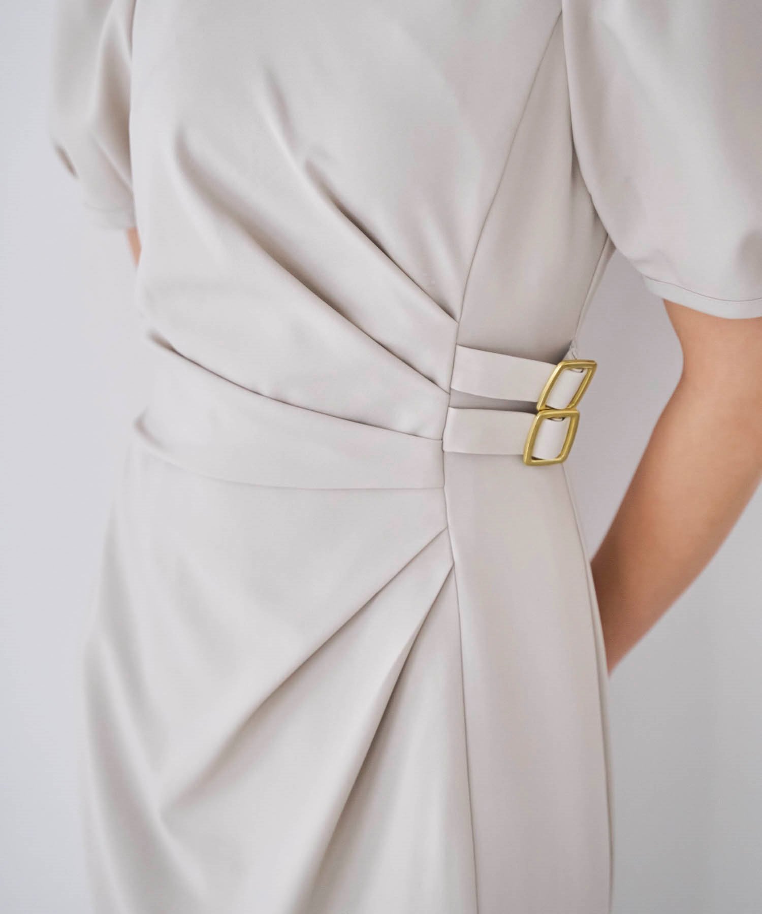 • ダブルバックルドレープワンピース(82ベージュ-S)