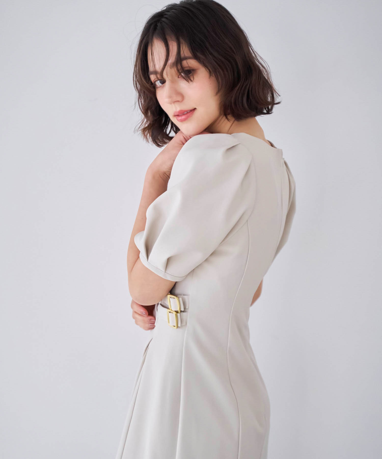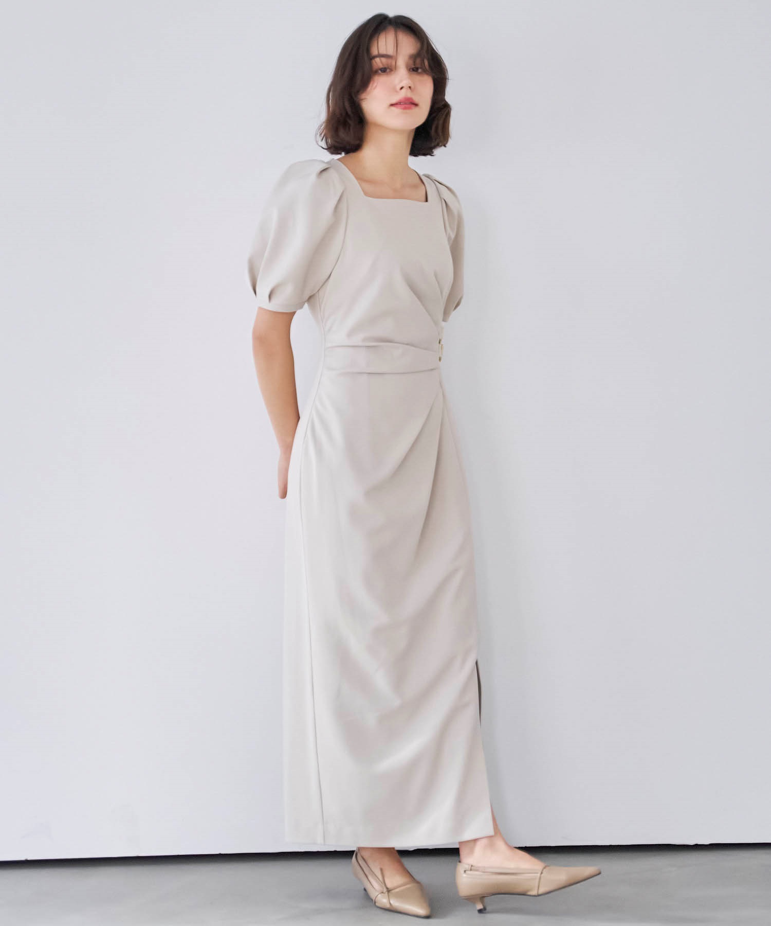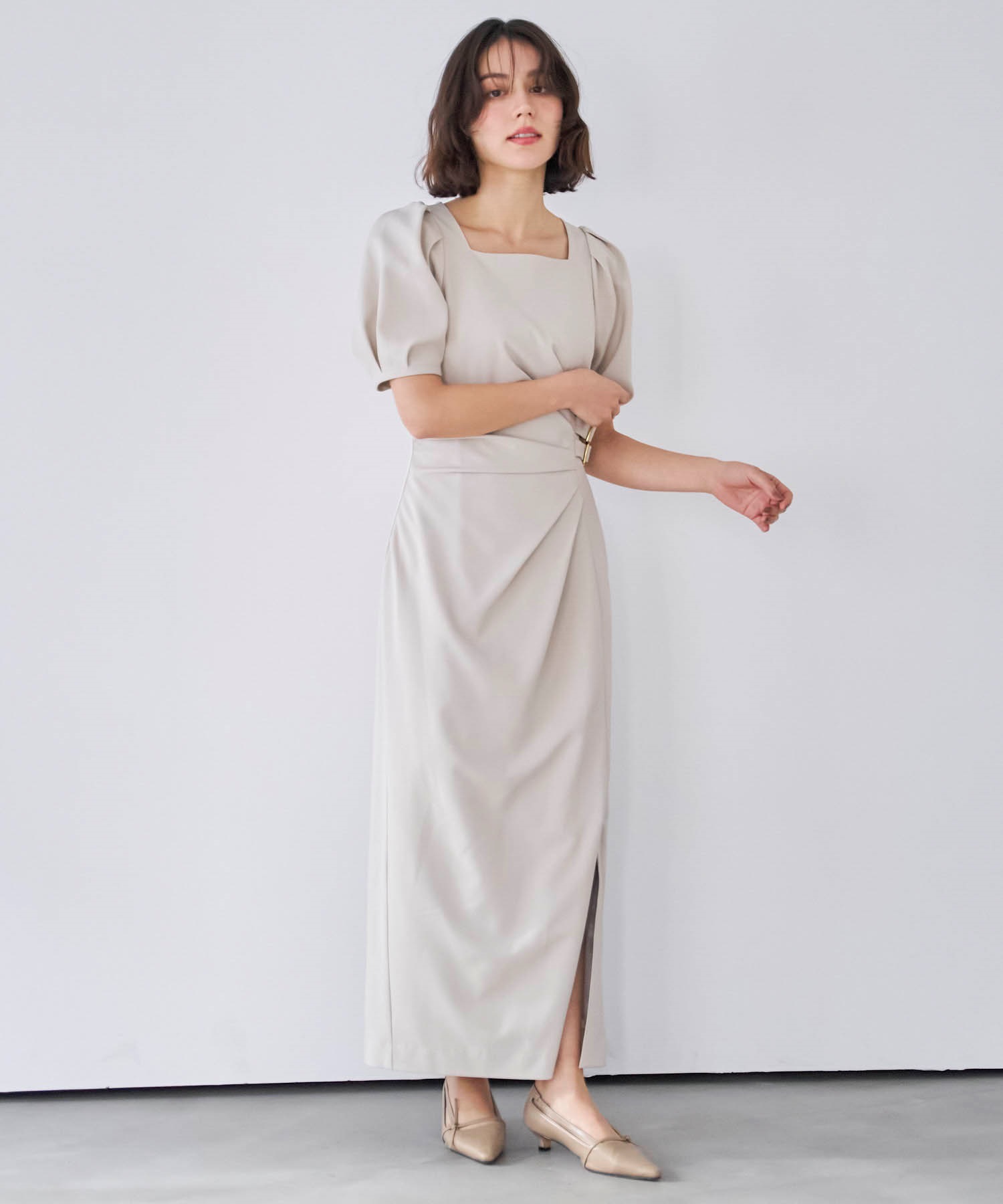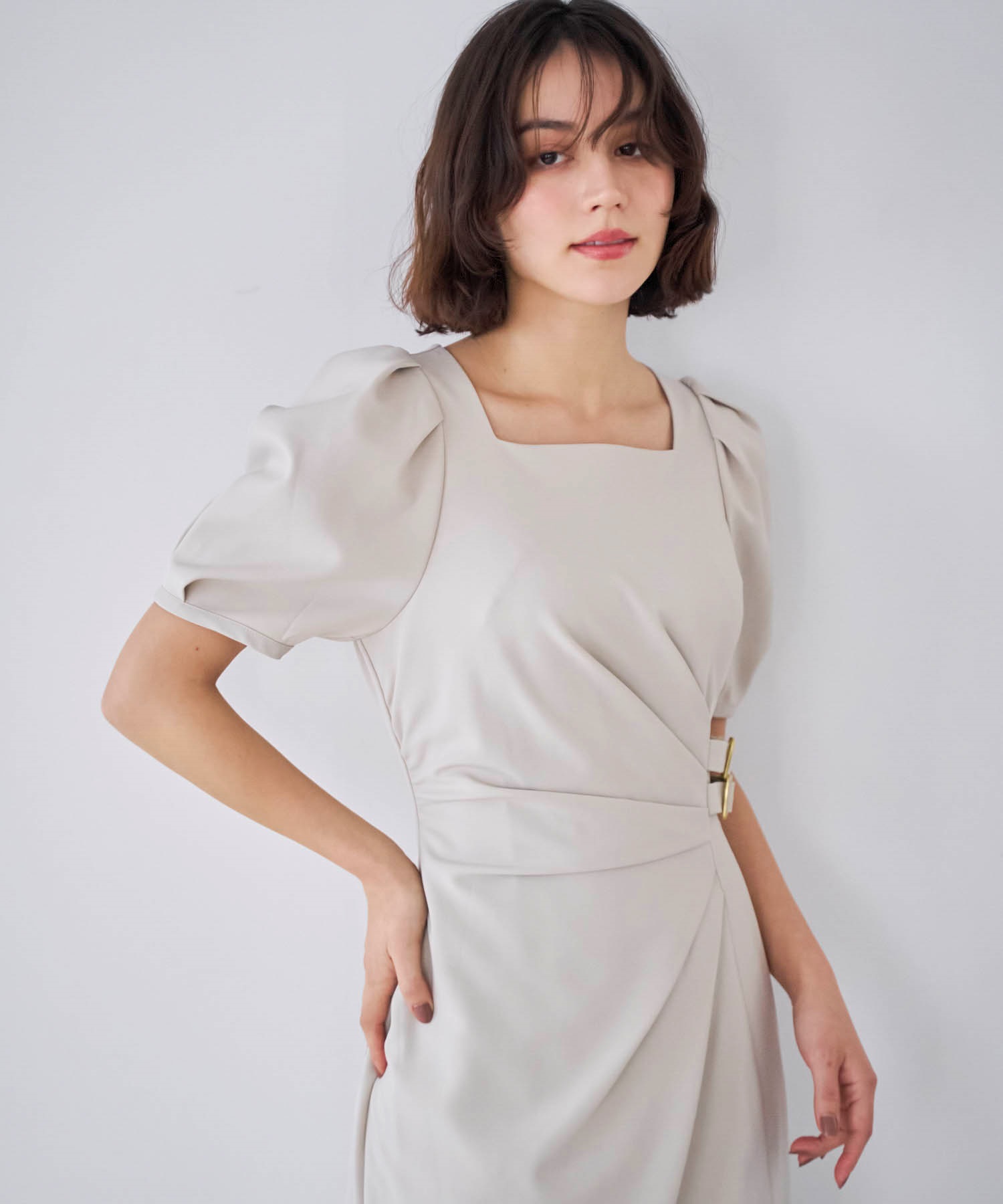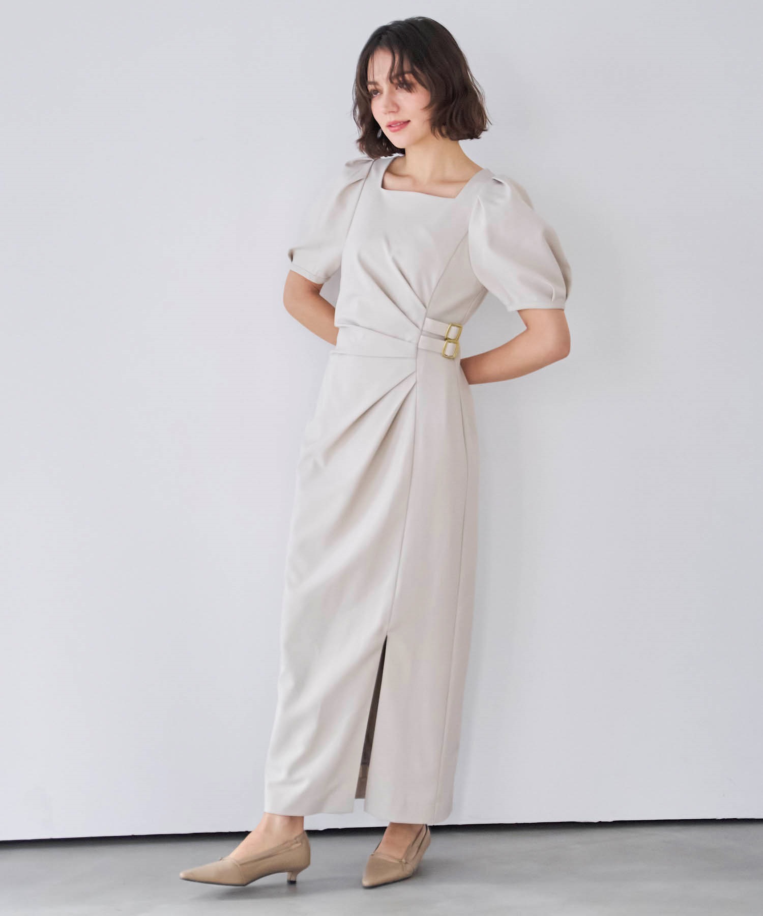 • ダブルバックルドレープワンピース(82ベージュ-S)
