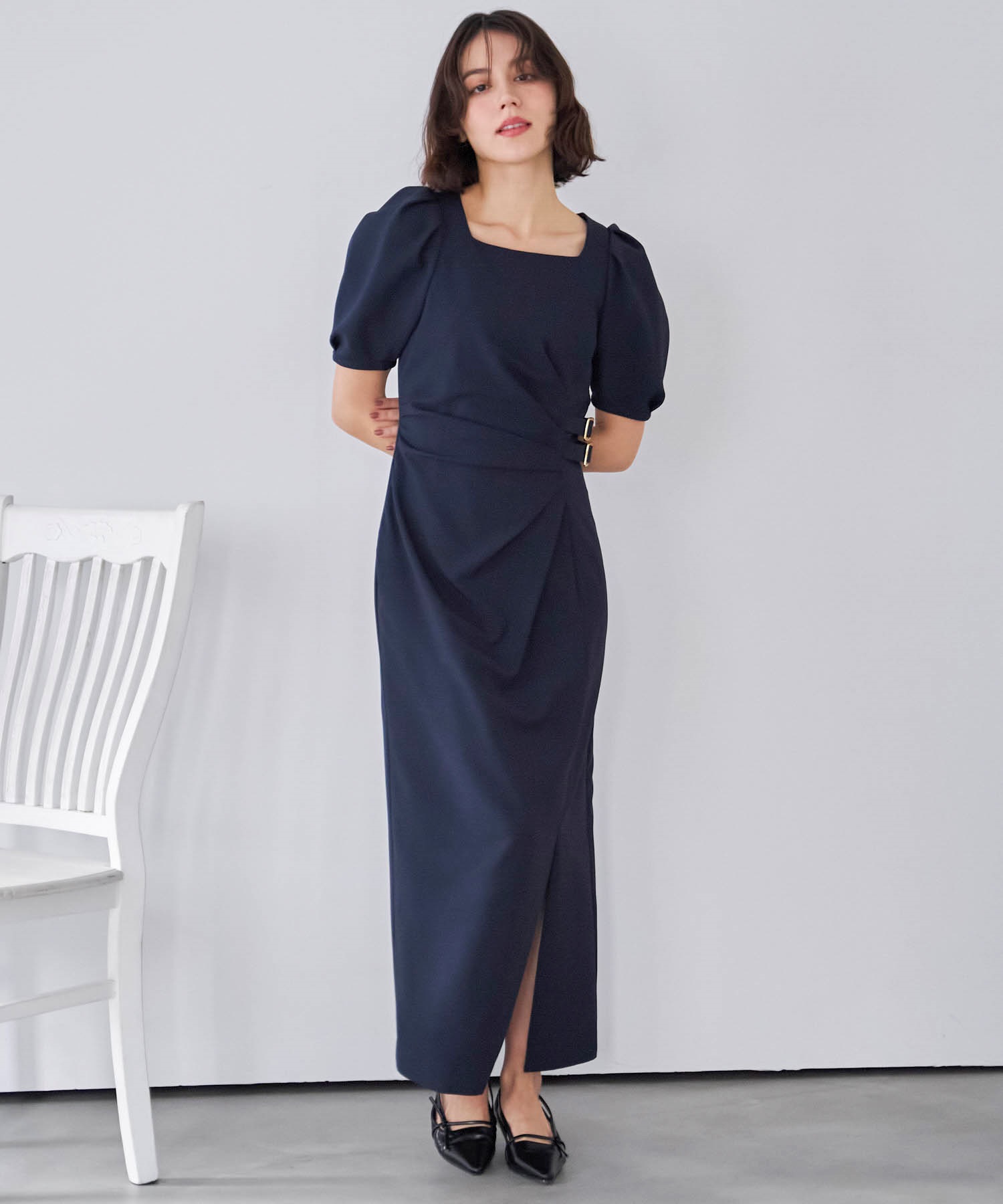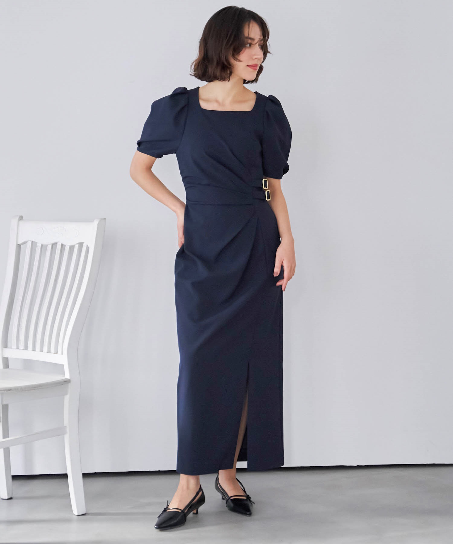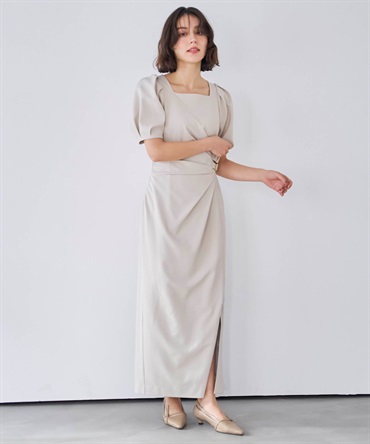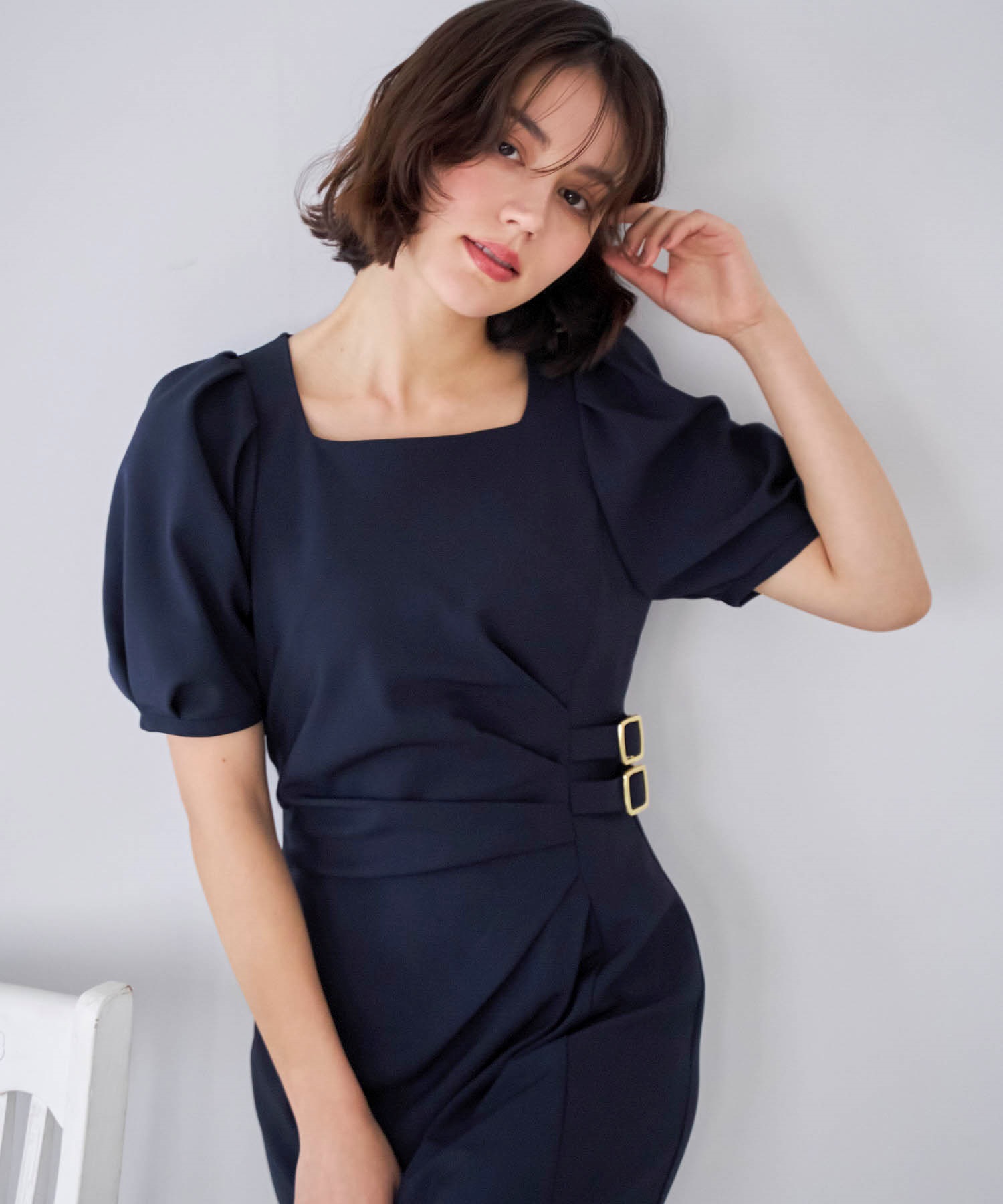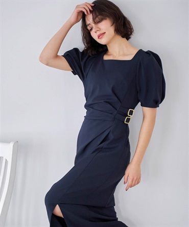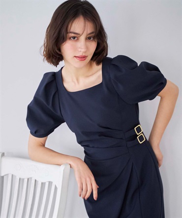 • ダブルバックルドレープワンピース