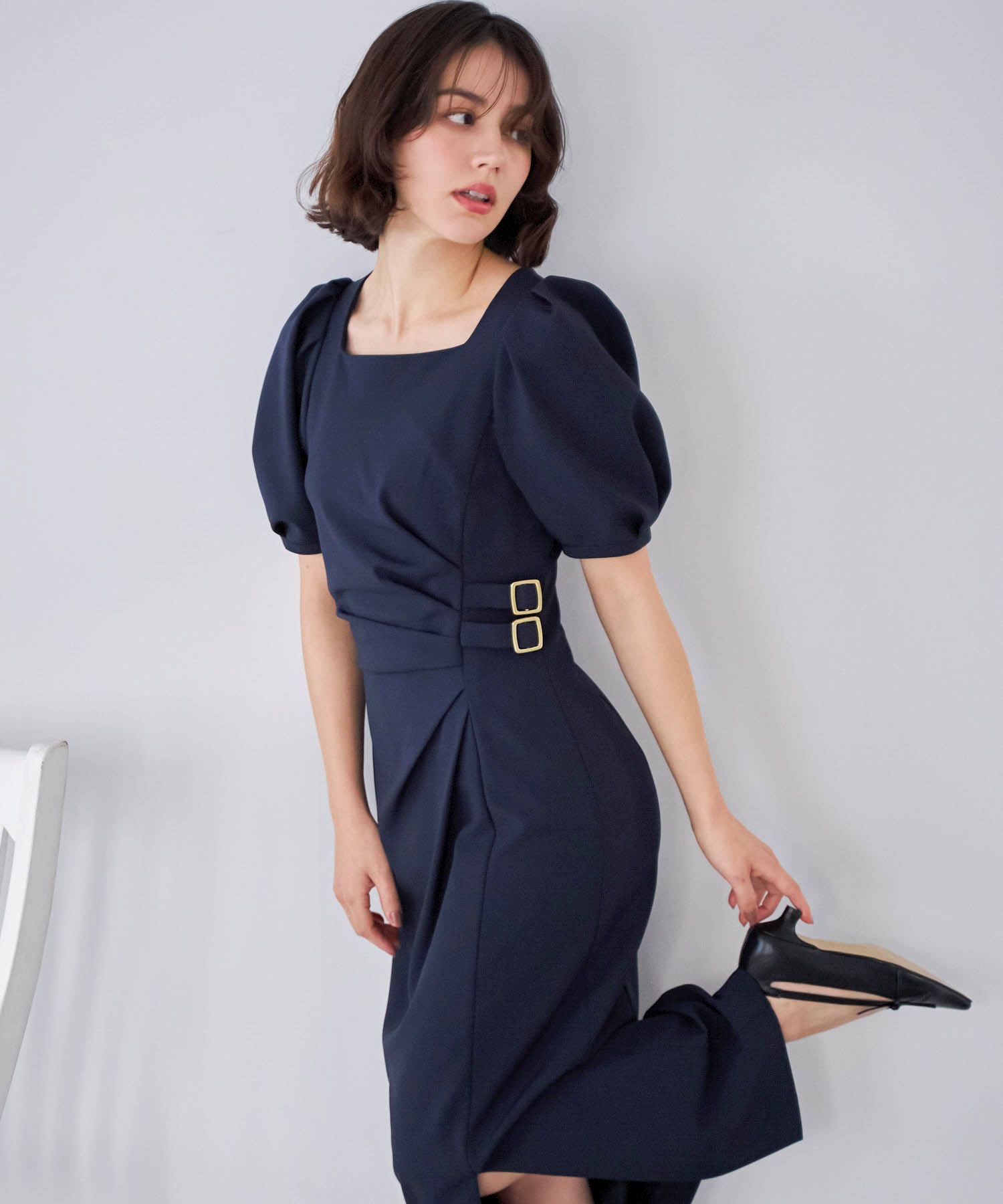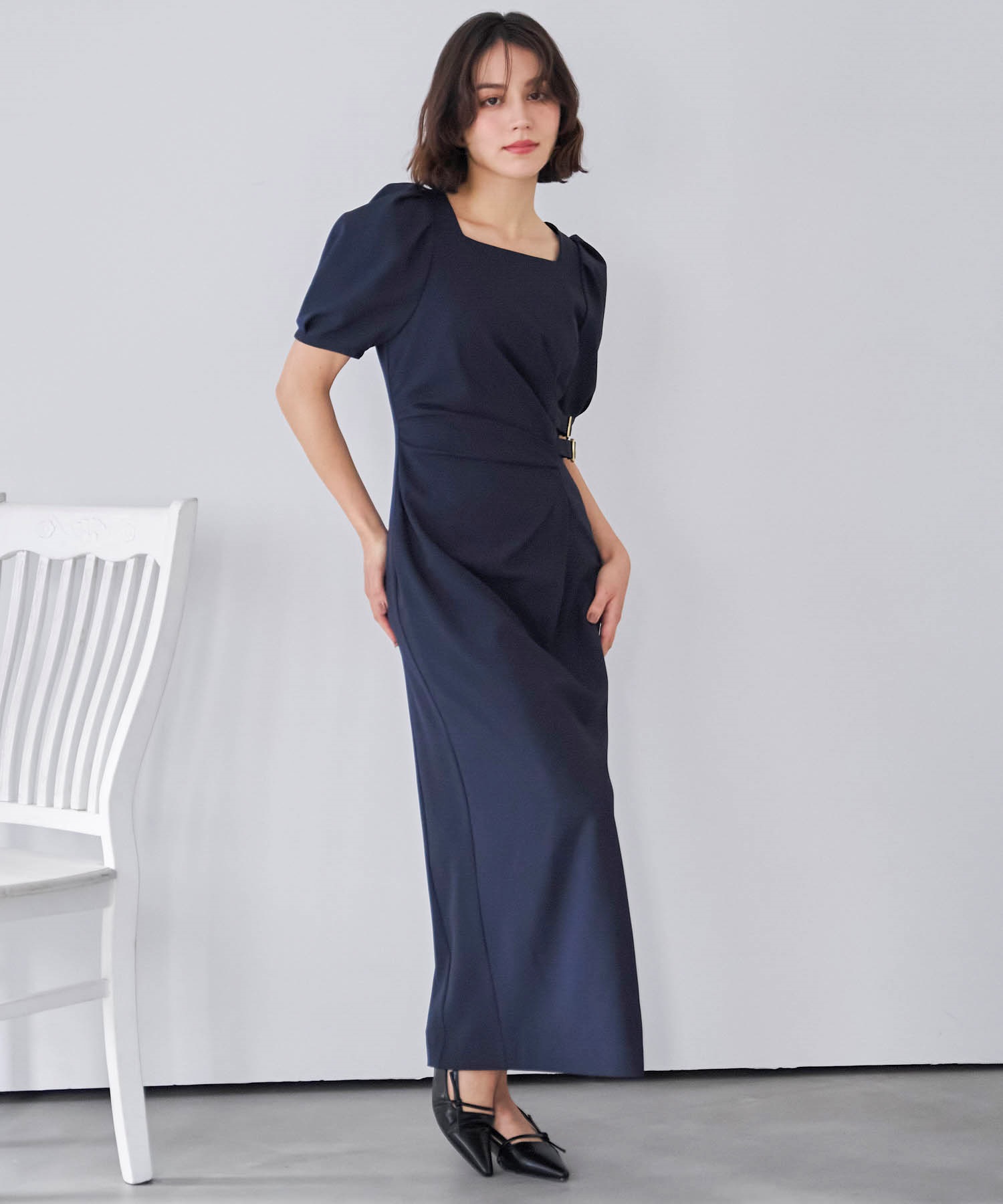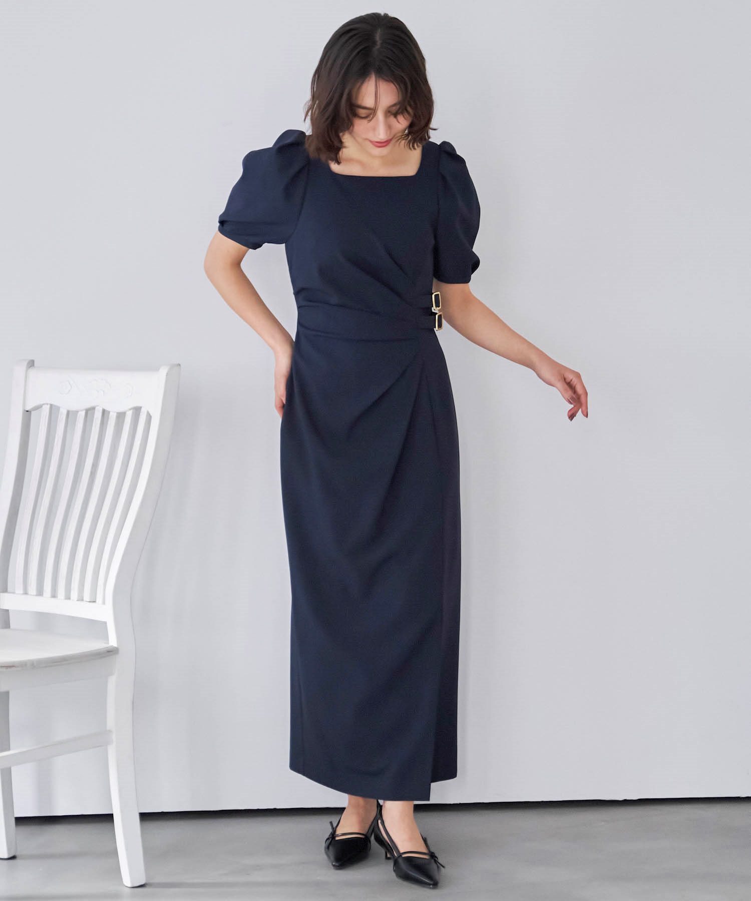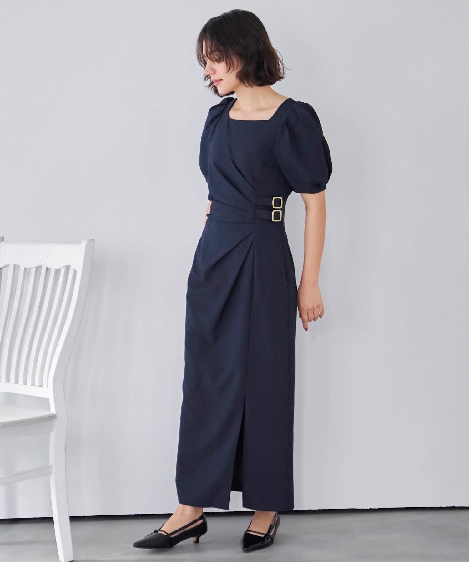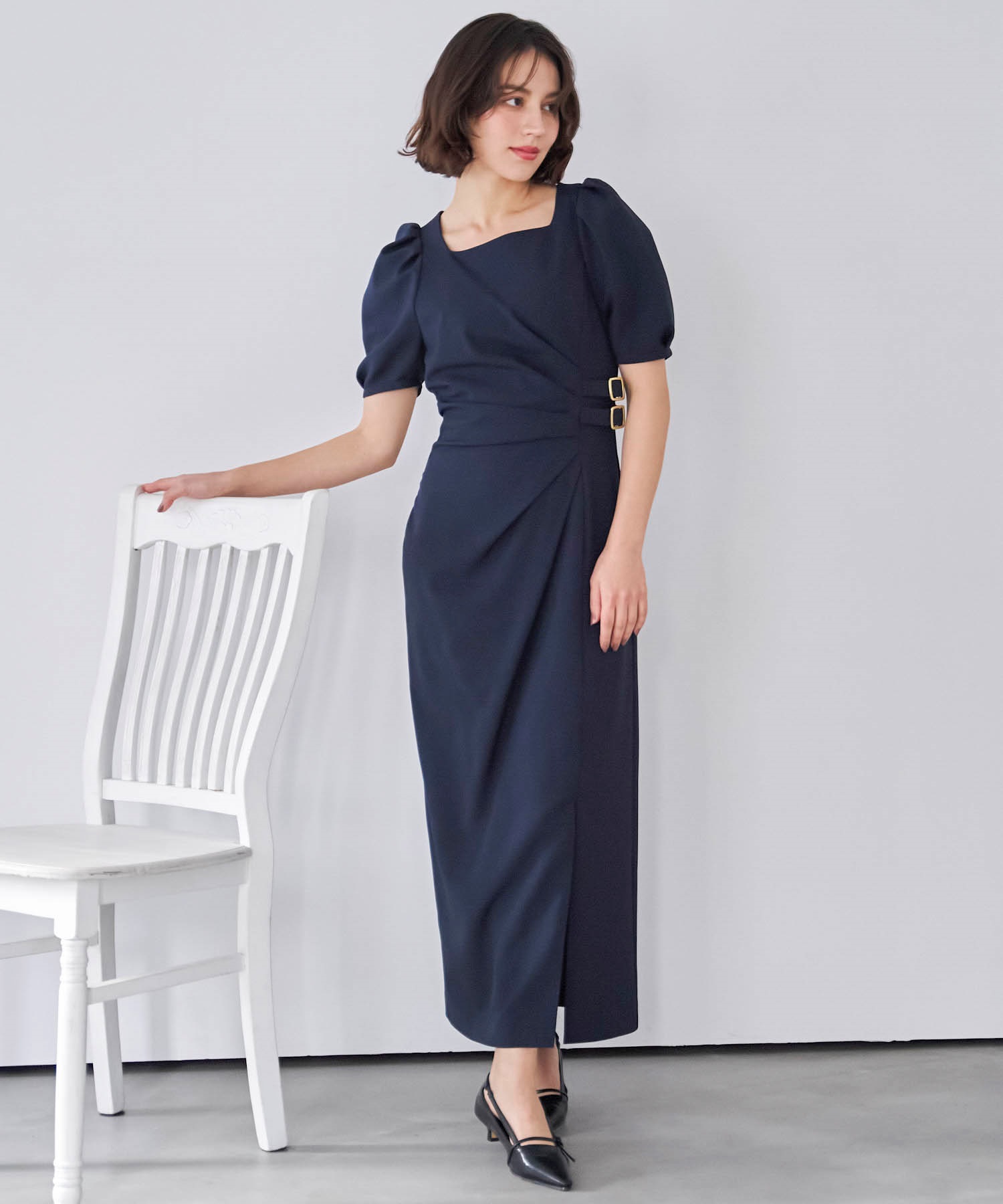 ダブルバックルドレープワンピース