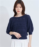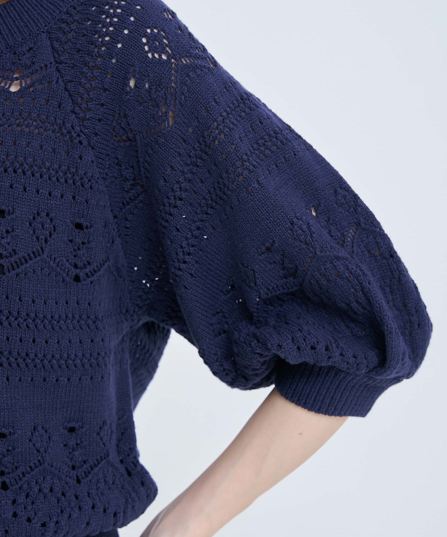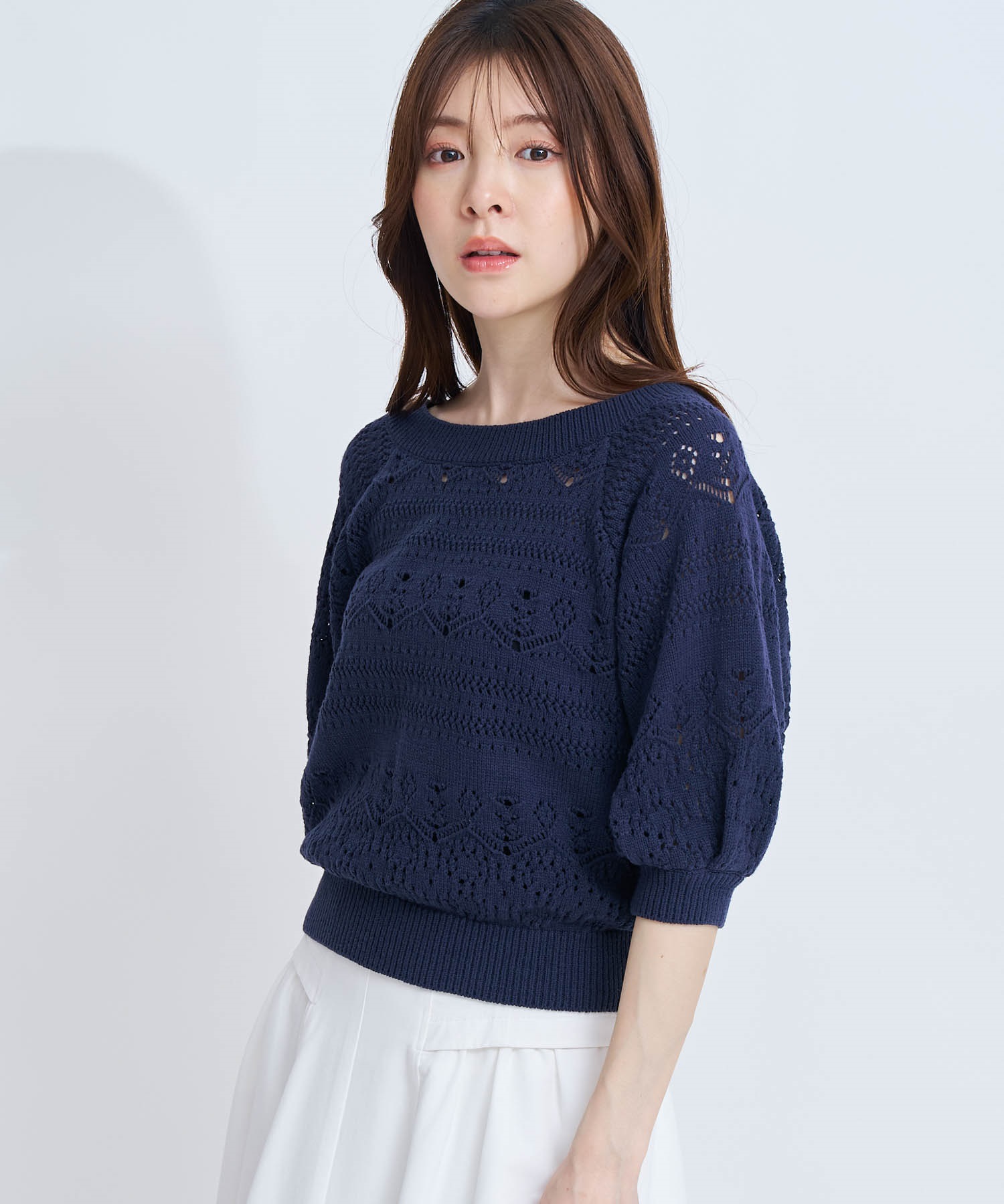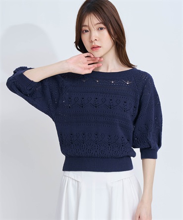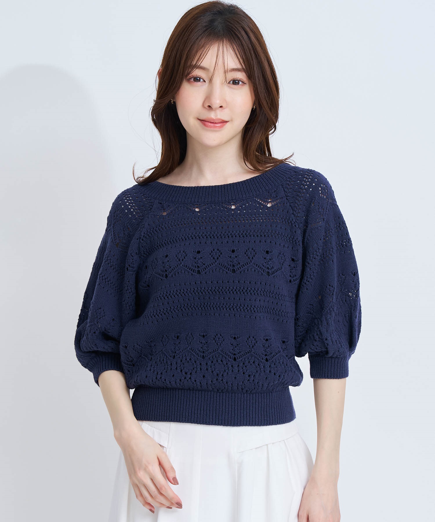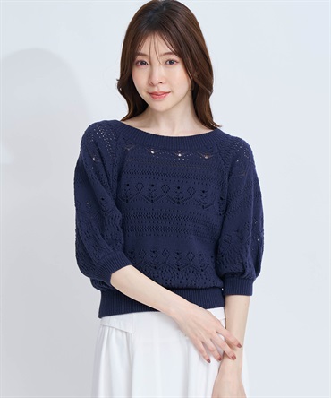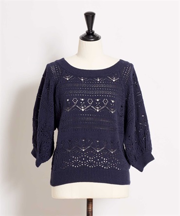 • 【予約】柄編みニットプルオーバー(70ネイビー-フリー-4月下旬ごろのお届け)