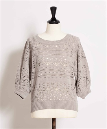 • 【予約】柄編みニットプルオーバー(11グレー-フリー-4月下旬ごろのお届け)